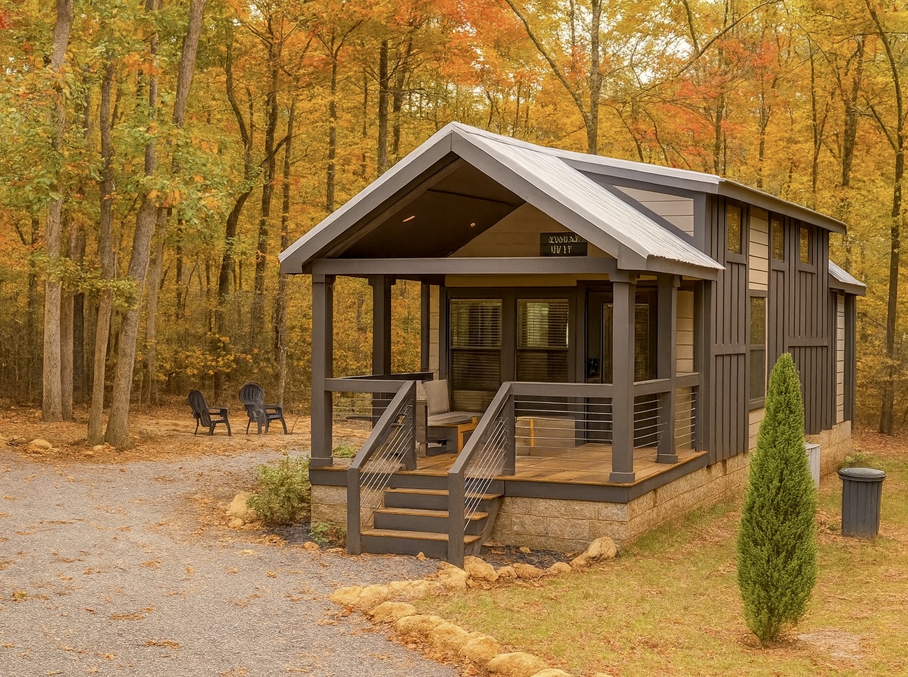Welcome to Eagle’s Escape, your perfect retreat in the Sunset Bluff Tiny Home Community of Monteagle, Tennessee. This charming tiny home is thoughtfully designed for comfort and relaxation while surrounded by the beauty of the South Cumberland Plateau.