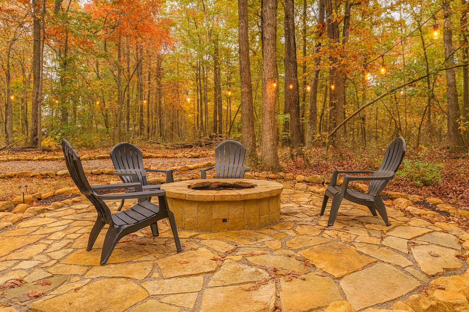 Outdoor fire pit with string lights for unforgettable nights