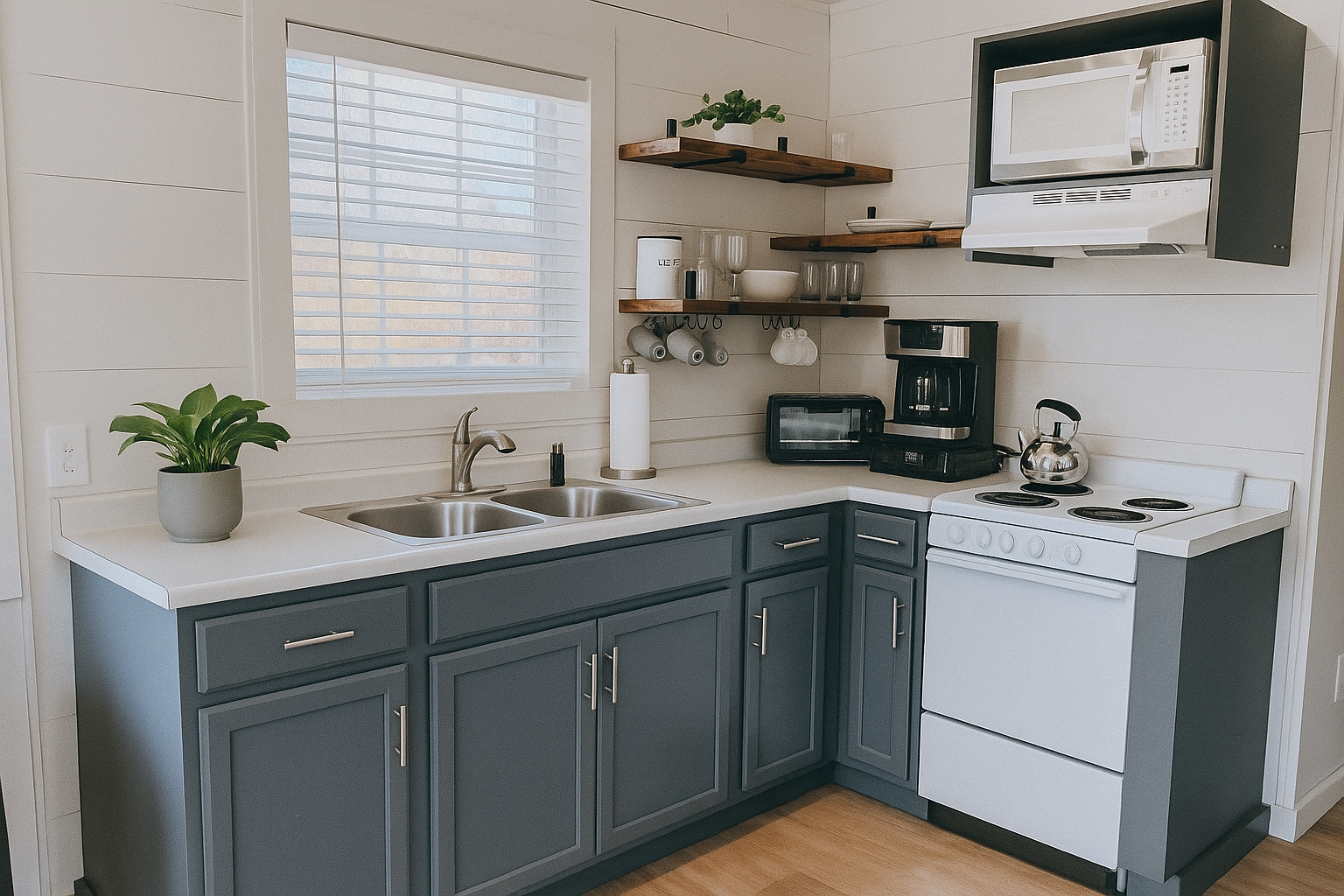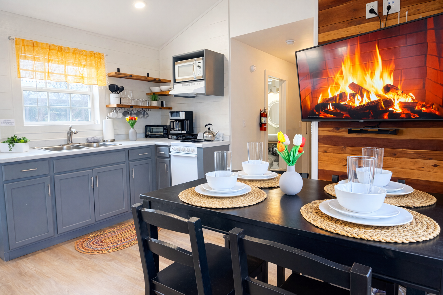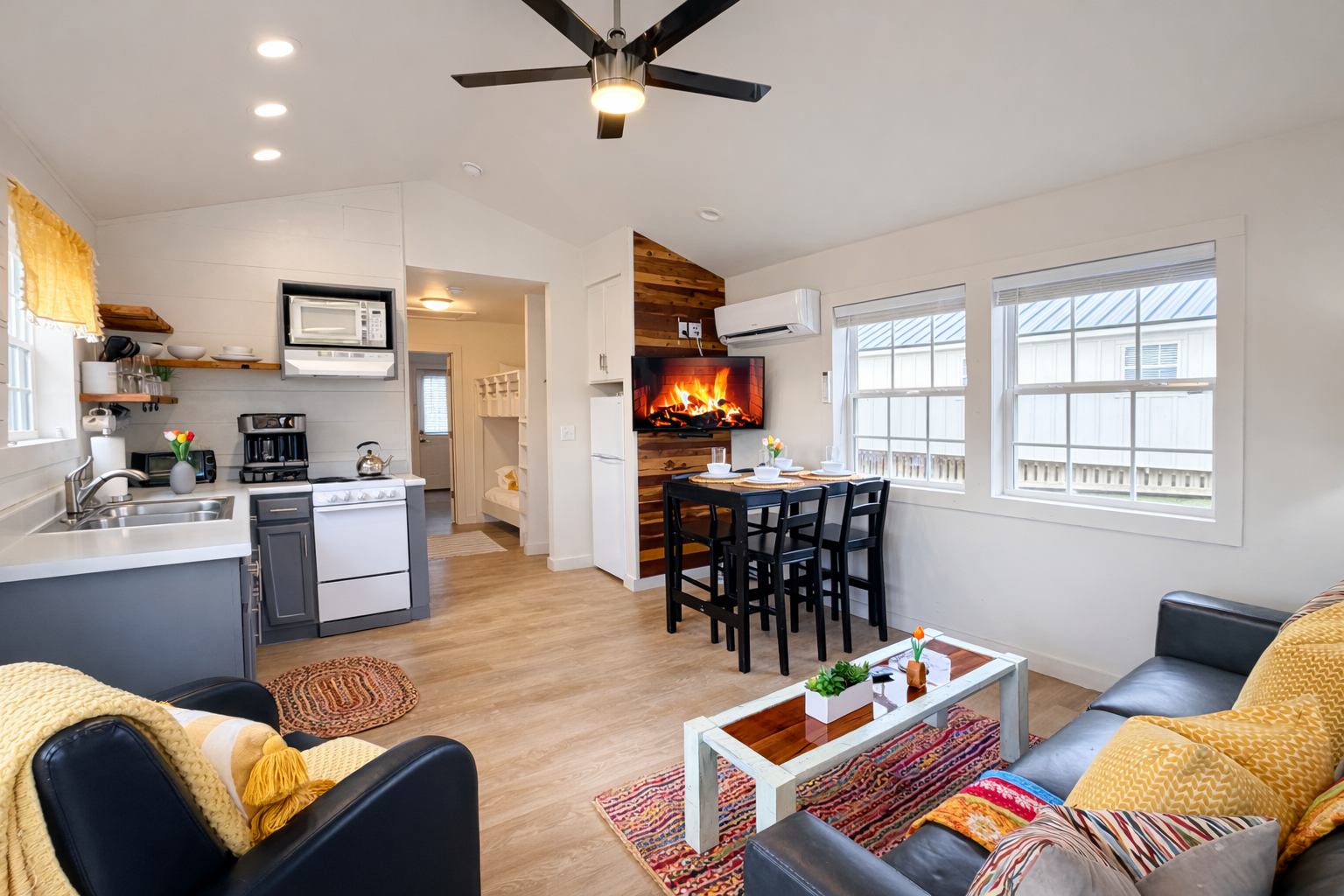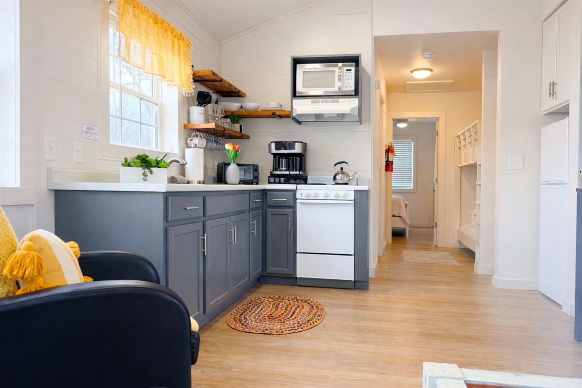 Our cottages are modern with all the amenities that you need including linens, towels, coffee and full kitchen.
