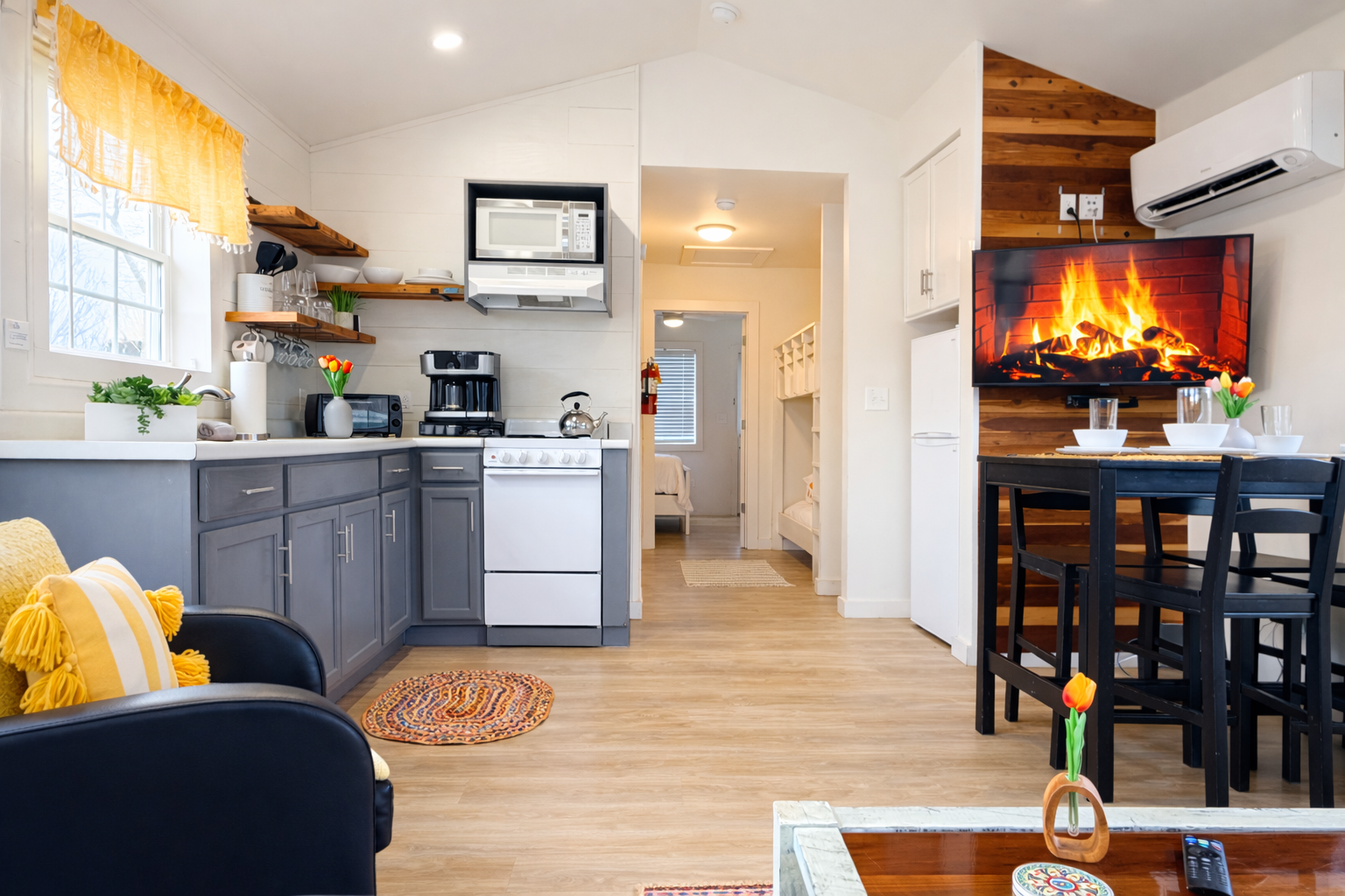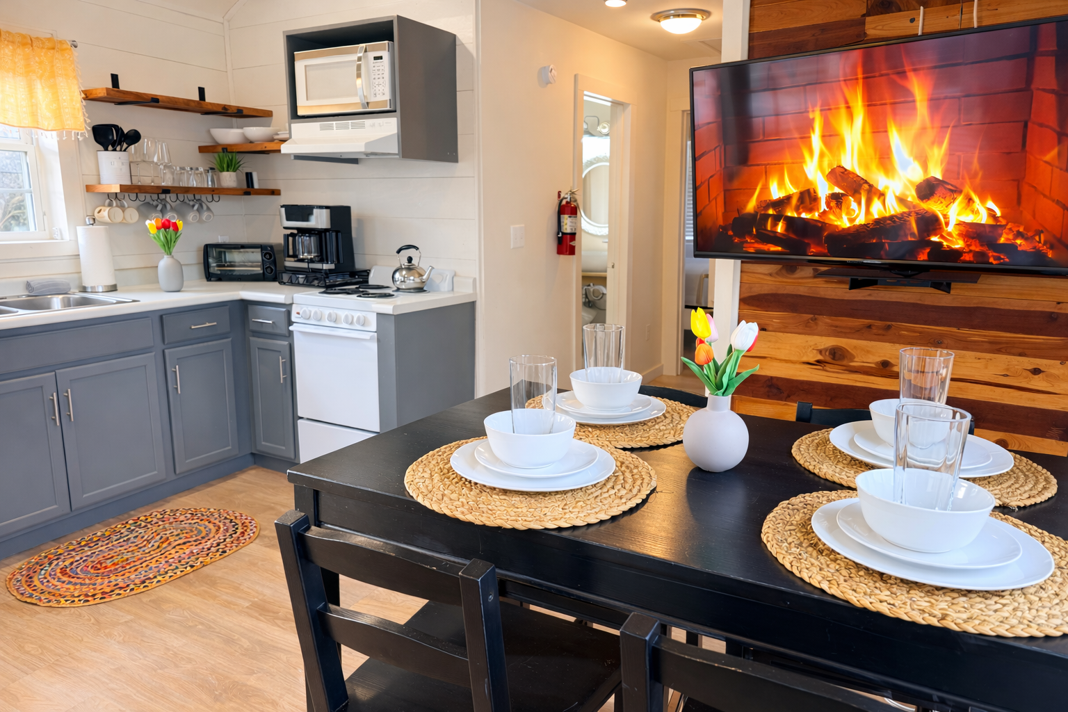 Our cottages are modern with all the amenities that you need including linens, towels, coffee and full kitchen.