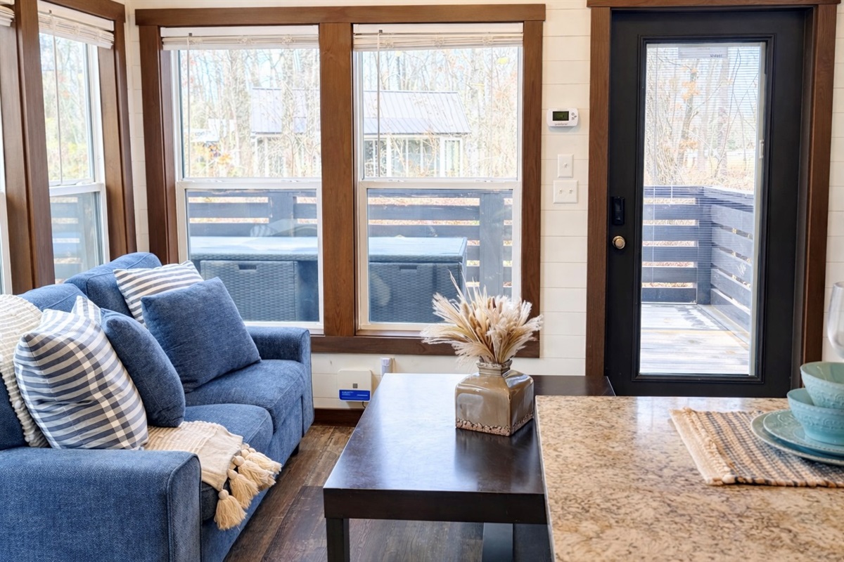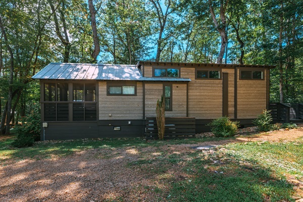 2 Bedrooms • 1 Bathroom 1 Bath • Sleeps 5-6Hiker’s Hangout at The Retreat at Deer Lick Falls is a cozy luxury tiny home located in a peaceful gated community atop Monteagle Mountain. It’s the perfect home base for hiking, waterfall chasing, concerts, or a quiet mountain escape.