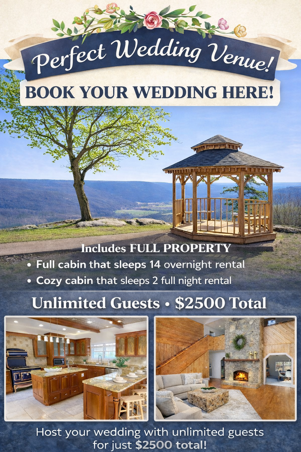 Also available for rent on the property is Cabin @ Paul’s Point, a charming one-bedroom rustic cabin offering a warm and welcoming retreat where you can truly unwind while taking in the stunning panoramic views that surround this peaceful hideaway.