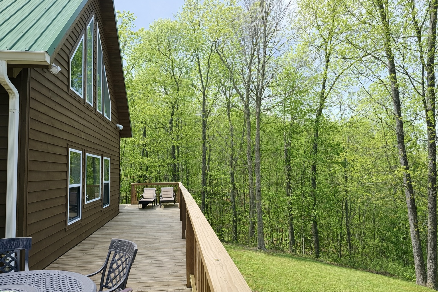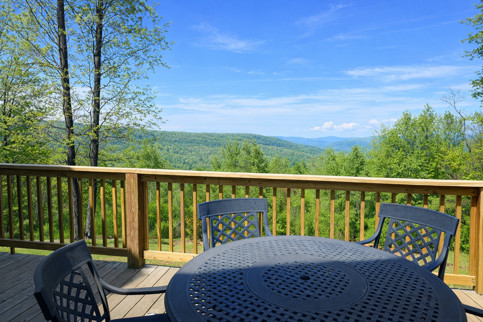 3 Bedrooms • 2 Bathrooms 2 Baths • Sleeps 3-6Beautiful panoramic view from this 3 bedroom, 2 bath luxurious home. 200 acres of private woodland to roam along the bluff over looking the mountains and valley below. Giant cathedral ceiling, large TVs, deck with seating for 10, dining room, fully stocked kitchen, and so much more. Incredible view of the valleys below from the deck where you can serve meals, drink early morning coffee, pick a guitar, and just about anything else you can think of. Contact us at 931.407.1017 or info@SouthCumberlandGetaways.com.